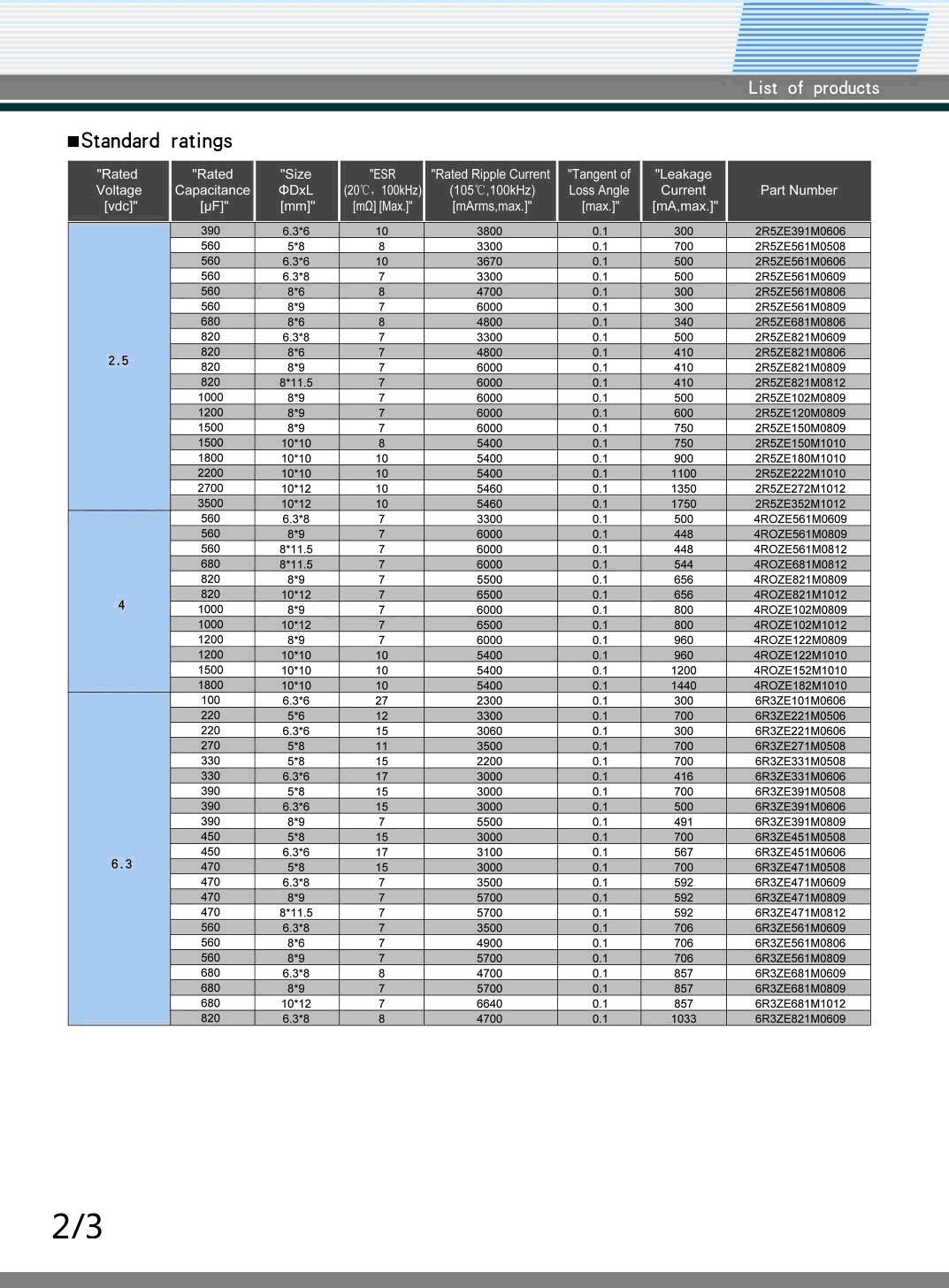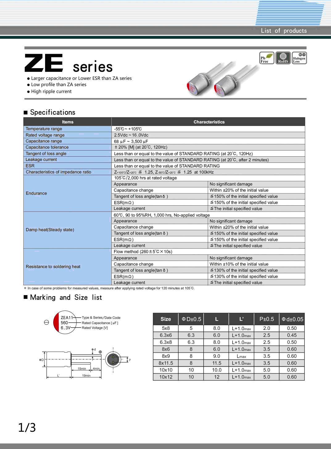 ZE系列2.5~16V,68UF~3500UF固態(tài)電容器